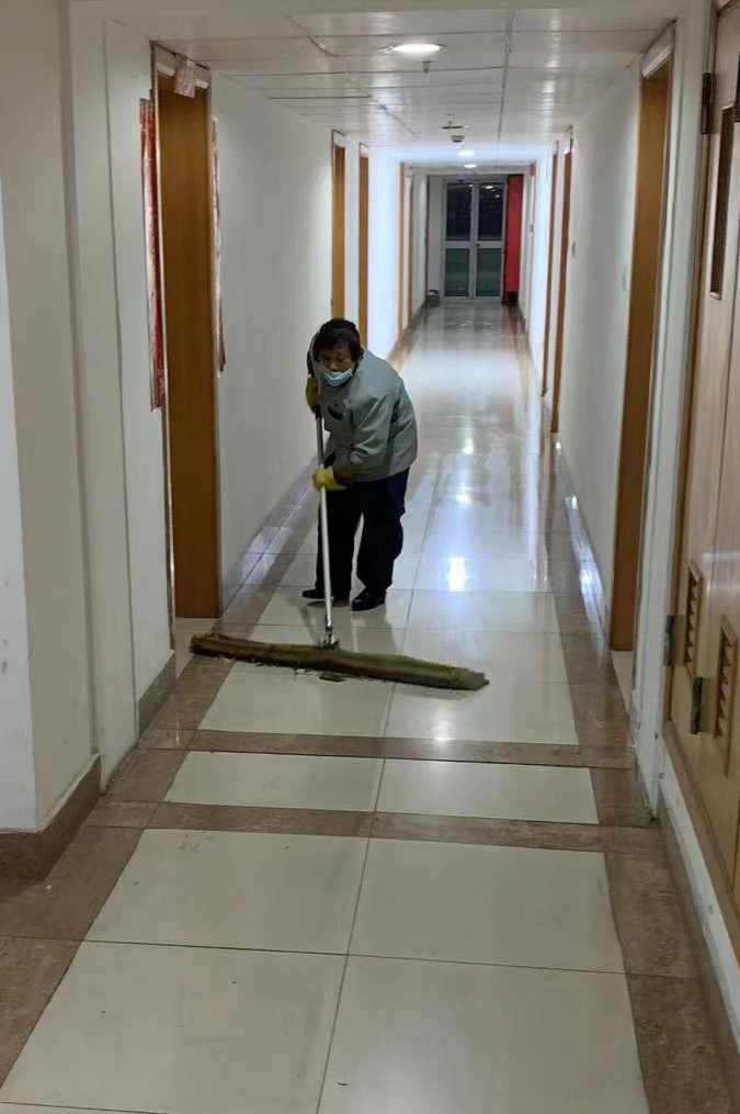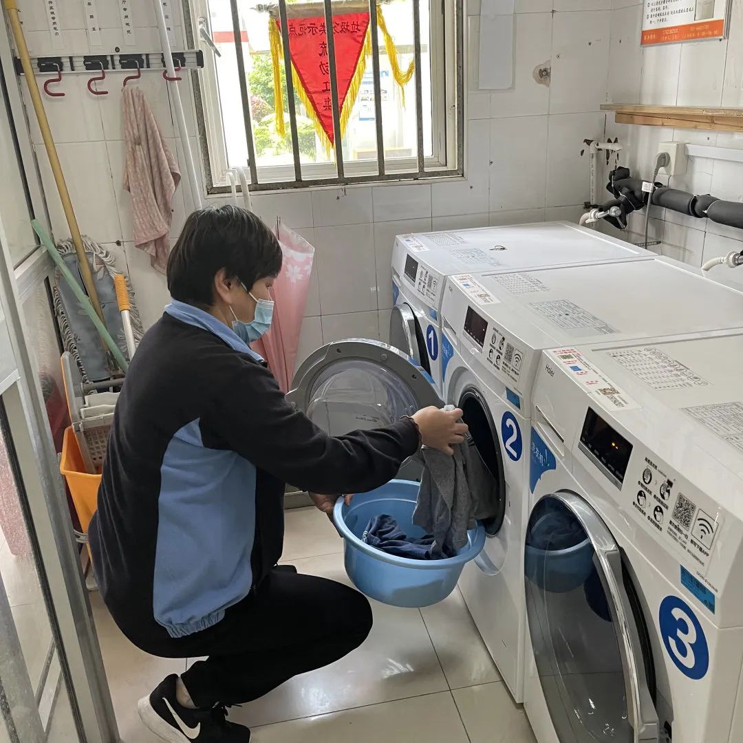 4幢6号教师公寓住着不少忙碌在学校抗疫一线的工作人员,他们经常早出晚归。宿管员崔丽君阿姨十分体谅他们的辛苦,经常帮忙将洗衣房中洗好的衣服及时取出收好,送衣上门。她每天工作14个小时以上,已连续一个多月未曾间断过。她总是等到所有“夜归人”都回来后自己才放心上床休息。