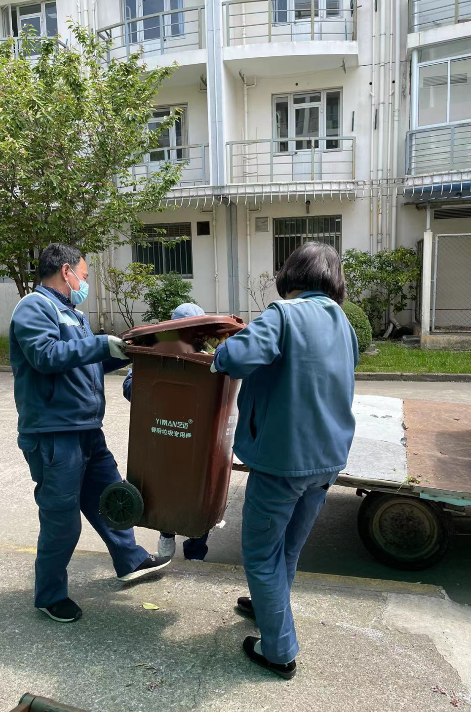 在严峻的疫情面前,物业的保洁团队亦没有退缩,在自己的岗位上默默奉献,辛勤付出。为了保持公寓干净卫生的环境,每天天未亮,他们就开始了清扫垃圾,上下搬运,把成吨的垃圾收拾得整整齐齐,归纳分类,用推车运到垃圾房。