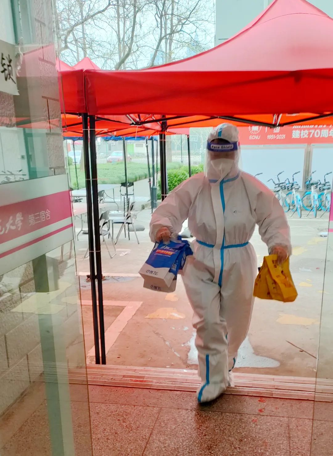 因为这场“战疫”,让来自不同部门、学部、学院的教职工走到一起,众志成城,同心抗疫,践行着华东师大的“三全育人”综合改革理念。八栋宿舍楼里三人工作组的老师们总是有问题一起商量,有困难一起上。经济与管理学部的青年学者於州老师是食堂、仓库的常用志愿者,搬货、搬饭,迅速麻利;计算机科学与技术学院的孙庆老师先后担任四舍的线下楼长、五舍的线上楼长,均打理得井井有条;经济与管理学部的曹安琪、王旭、林悦、杨亚星、以及数据科学与工程学院的倪葎等老师,担任楼长的同时,还承担了志愿者统筹、物资分发、餐食对接等工作;软件工程学院的鲍海勇老师、物理与电子科学学院的聂树伟老师、教育学部的李锋老师等是药品快递的黄金搭档;信息化治理办公室的周祥、徐庆贤老师、收发室的吴红胜老师、国际教育中心的孙琦老师、经济与管理学部的钱琳老师等是核酸现场最长久也是最靓的风景线;