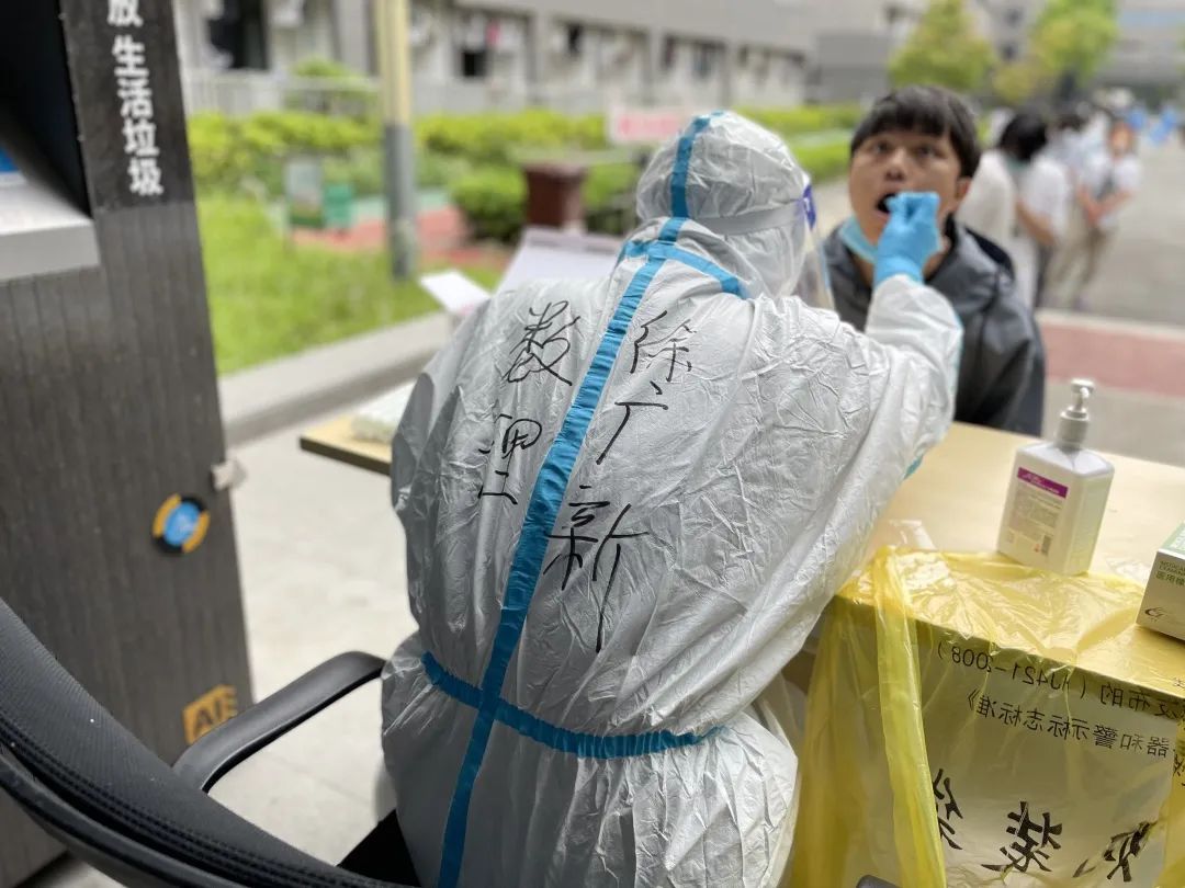 哪里有需要,哪里就有“红色马甲”的身影。段存升老师是抗疫“多面手”,在开展全员核酸检测时,他是教师核酸扫码志愿者,手持扫描仪一边扫码,一边维持现场秩序,紧急情况时他又转变为送餐志愿者,协助配送一日三餐;韦应祺老师身兼数职,他是杨浦校区的后勤保障大管家,加班熬夜已成为常态,每一批保供物资进校、学生转运和离校车辆安排,他都会在现场指挥调度,大家亲切的喊他为“总指挥长”;王晓斌老师负责组织捐赠物资的分发,带领运输队成员一趟趟地把爱心物资送到宿舍楼,他还负责杨浦校区每日的核酸检测安排,为了方便学生采样,他把方案优化再优化、细化再细化,就是为了让每位同学都能快速有序完成核酸检测,他被大家亲切的称作“核酸王”。