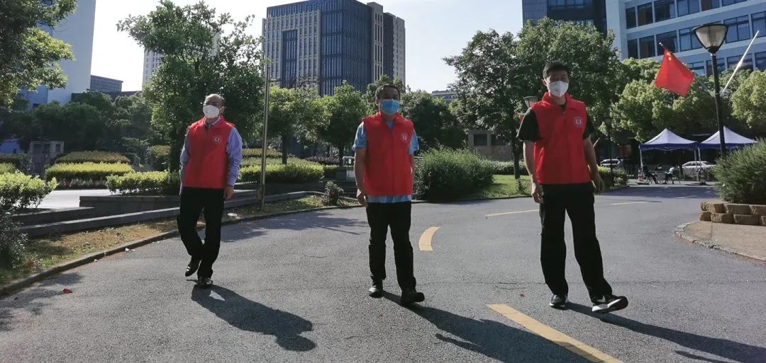 巡逻志愿者服务队建立了学生户外活动期间巡逻值班制度。他们分成几个小组,从早到晚深入到校园的各个公共区域和角落,重点对围墙、各学院楼、办公楼周边进行巡查。在巡查过程中,他们仔细查看校园的防控措施是否落实到位,引导户外活动的学生正确佩戴口罩,提醒学生保持安全距离,劝止学生撸猫等,并及时反馈存在的问题,确保学校安全、稳定和有序。加入巡逻志愿者服务队以来,马国祥老师每次巡逻日几乎都可以“霸榜”微信运动的封面,他说:“步行巡逻既能巡得仔细,看得准确,问得清楚,又能锻炼身体,两全其美的事,何乐而不为!”余南飞老师则是杨浦校区的安全守护者,校园的角角落落都留下了她巡查的身影,不论天气如何,出现情况时她都第一时间赶赴现场处置,守护杨浦校区的围墙,维护校园安宁。