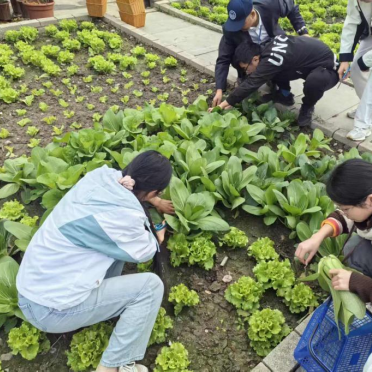 如今的 “蔬梦田园” 已是绿意盎然、硕果累累。同学们再次走进菜畦,弯腰采摘亲手栽种的青菜、萝卜,叶片上还带着清晨的露珠与泥土的清香。从翻土播种到悉心等待,再到如今的丰收收割,大家真切体会到 “春种一粒粟,秋收万颗子” 的深意。