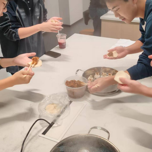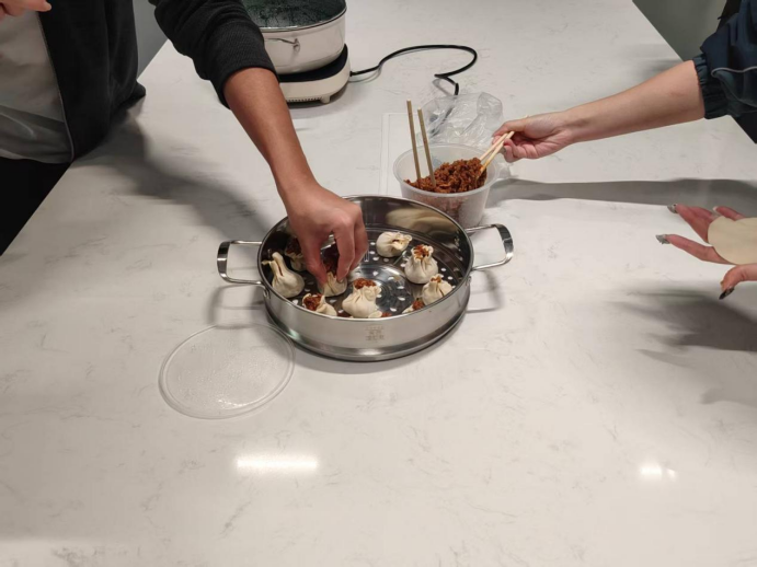 当一个个形态饱满、褶皱整齐的烧卖放进蒸笼,蒸汽氤氲中,糯米的软糯与食材的鲜香交织。出锅后咬上一口,皮薄馅足、鲜香四溢,大家一边品尝自己的劳动成果,一边交流制作心得,在动手实践中领略了中式传统点心的文化韵味,也收获了满满的成就感。