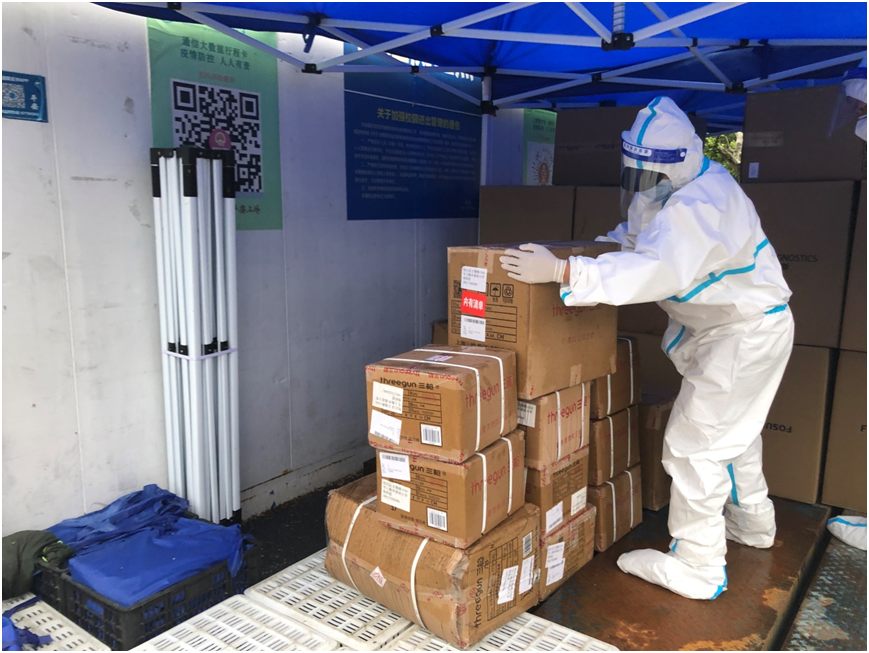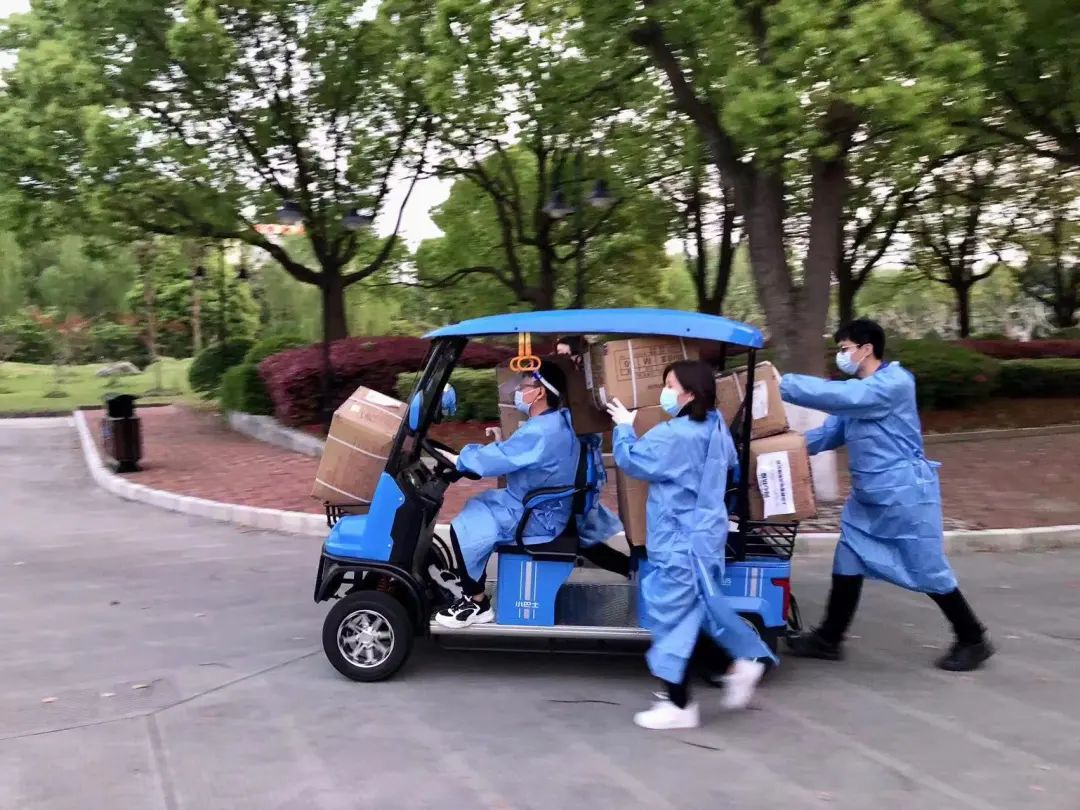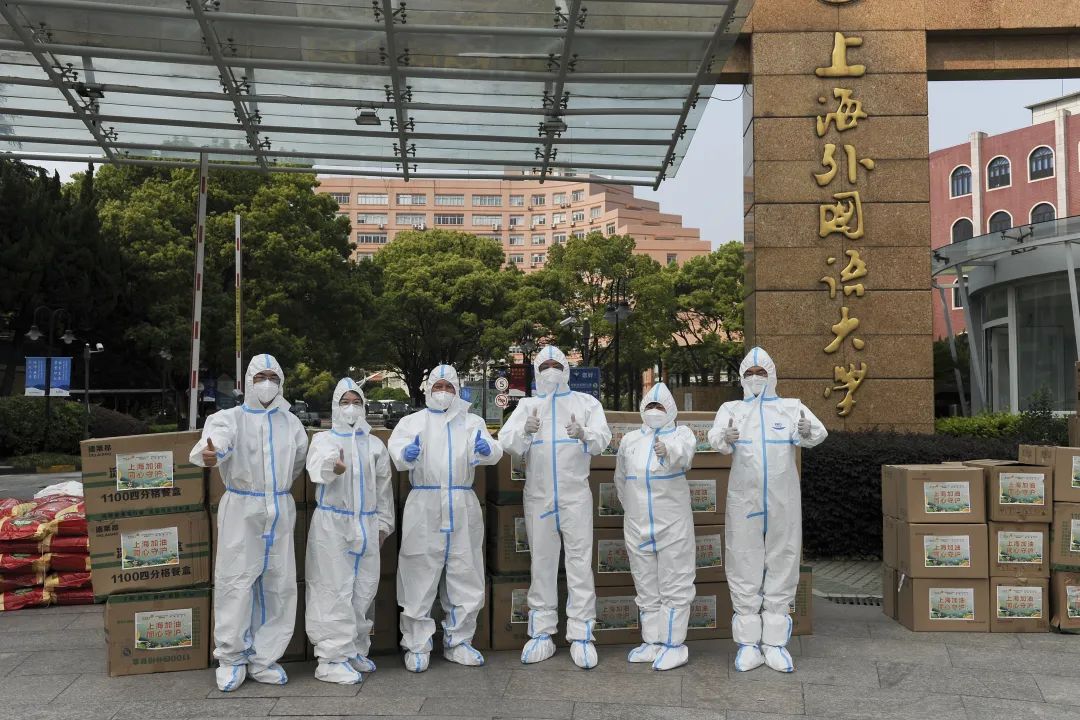 与此同时,经过国际金融贸易学院章玉贵院长的积极联络,金贸学院校友和企业导师纷纷行动起来。4月30日,上海三毛集团原党委书记、上外MF企业导师朱建忠先生出资为驻守两校区的一线防疫人员购置的换洗内衣1500件最先抵达。