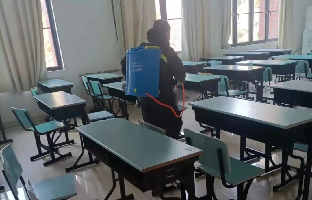 疫情期间,空空荡荡的校园内总能见到这样一群人,为了科学配比,精准开展消杀工作,他(她)们积极学习防疫消毒知识及技能,背着沉重的设备游走在抗疫最前线,用消毒药水、清洁工具默默守卫着整个校园的安全。