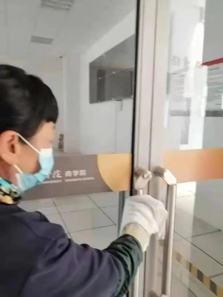天未亮,他(她)们已经开始着手准备,除做好日常场所保洁工作之外,他(她)们会对包含各园区每幢宿舍楼、教师公寓、留学生公寓、体育馆、大礼堂、公共教学楼、隔离观察室、垃圾投放点在内的每一个场所进行全面消杀,同时对重点部位进行精准消杀,并仔细做好记录工作,每日三次从每幢楼的第一层至最顶层,直至确保没有一处遗漏,为防止消毒液对电梯等重要机械设备造成损坏他(她)们会在按键处贴上保护膜,并定期更换。数百上千次的消杀工作只有他(们)自己了解其中要花费的时间与精力,哪怕无人知晓,哪怕再苦再累,他(她)们也从未抱怨一句,只默默做好消杀工作的一点一滴,以拳拳之心守护着整个建桥的平安。