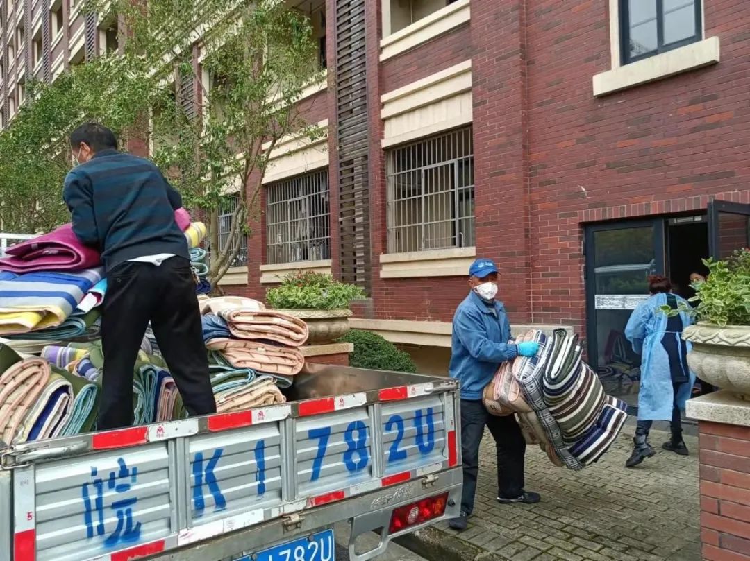 在学生不能流动时,物业全体工作人员默默扛起了上万名学生、职工的生活服务工作。他们每日在确保自己核酸无异常的前提下确保24小时联系在线,有召必应,坚守在服务一线近20小时,办理健康观察入住、协助送餐,夜间加强巡视以保障园区寝室安全,更换清洗临时住宿场所寝具,协助做好物资发放、师生团购等各项服务工作,只要我们的师生有需要,哪怕再苦再难,他们也克服重重阻力,只为了在艰难的日子里我们的师生能生活的舒适一些。