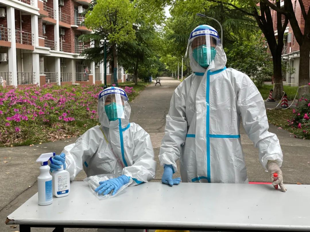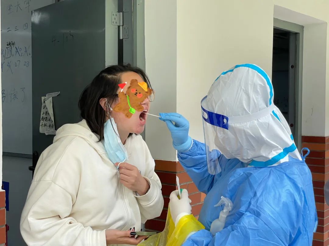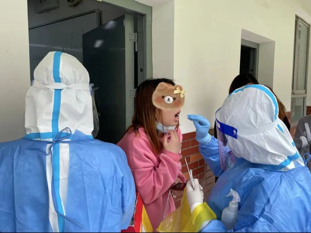 每天她们都要穿上厚厚的“大白”,戴好手套和面屏,引导师生们核酸登记,分批有序地做采样。由于封控区域需要上门做核酸,医务室的医生组织集结“外采小分队”,前往校内各个封控区域进行上门采样。