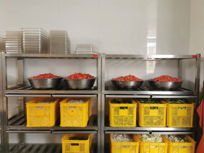 加工区内,物品分门别类地放置在规定的位置,生食区与熟食区严格分开。一应俱全的设施、排列整齐的抹布、荤素分开的砧板……规范与秩序彰显在后厨的每一处细节里。疫情只是让标准的执行更为严格。
