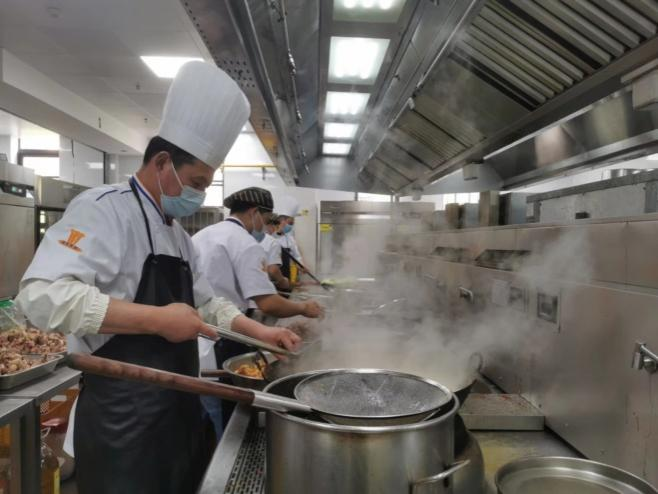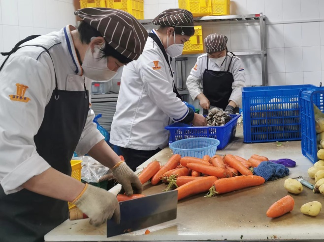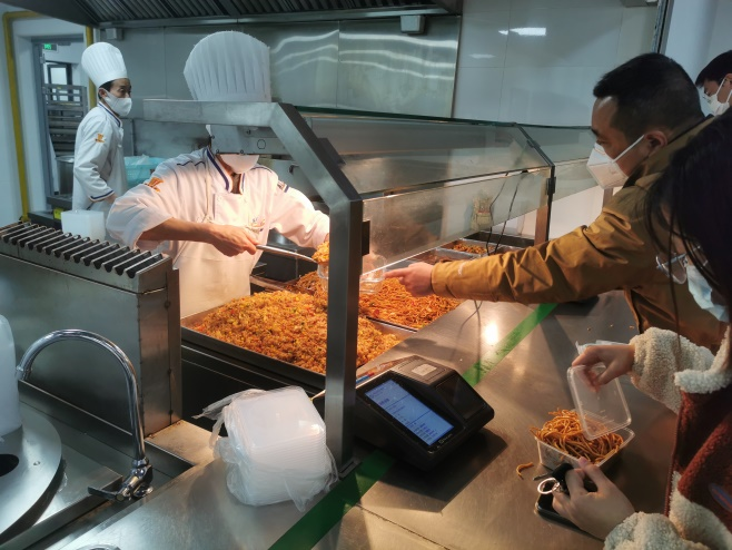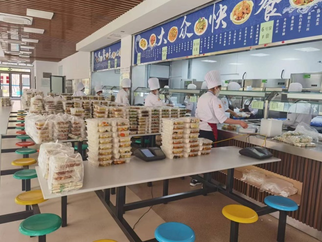 为保证校内的师生都能够吃饱、吃好,食堂上下229名员工齐心协力,全力以赴,已经一个多月全天候坚守岗位,保证菜品供应、价格稳定。