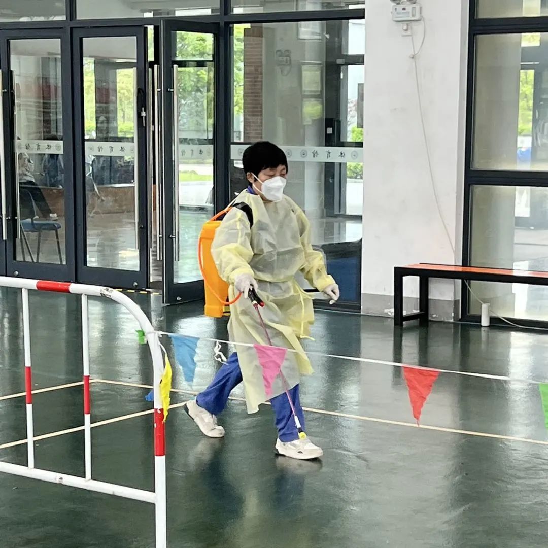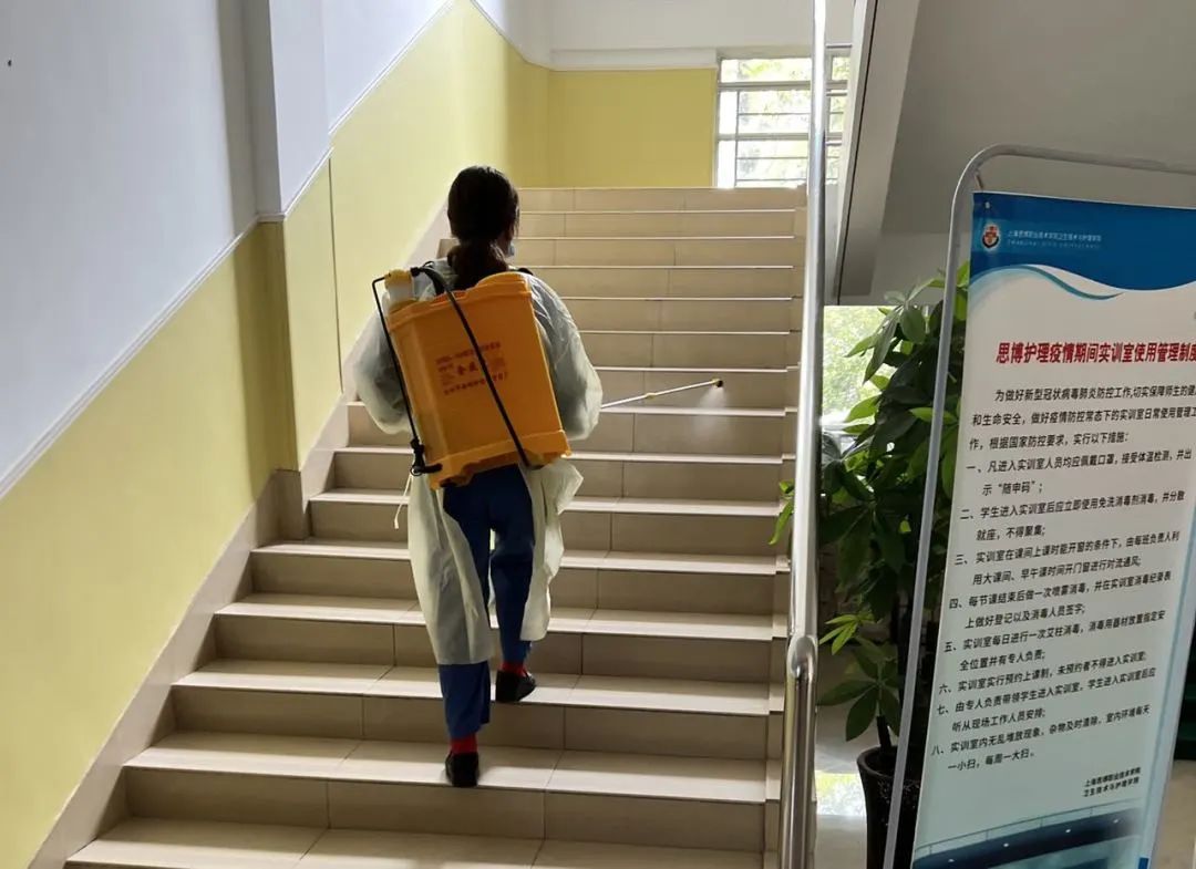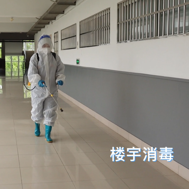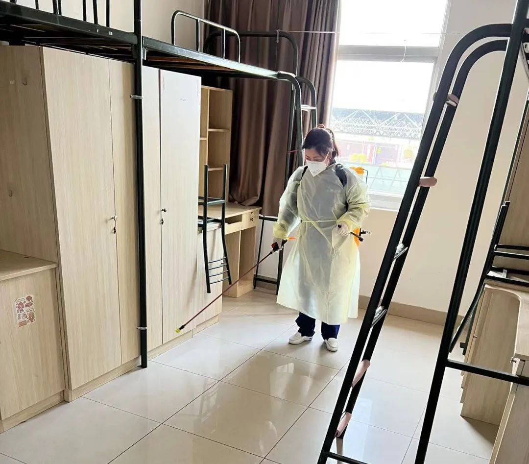 学校成立由皋玉蒂校长任组长,后勤保卫处处长王铠任副组长的消杀工作专班,专班成员由物业保洁人员、商超工作人员、食堂工作人员、保安工作人员等 30 余人组成。先后组织专班人员参加了两次线上专题消杀技术培训和多次现场消毒技术培训和实操作业指导。结合我校当前疫情防控现状以及场所空间实际使用,要求工作专班作业人员要每日对33个场所点位进行预防性消杀,每次消杀面积约2.35万平方,且对于图书馆、食堂、学生公寓、体育馆、隔离区等重点场所实行每日不少于 3-5 次消杀,对于进校物资实行每批次的“三重”消杀。