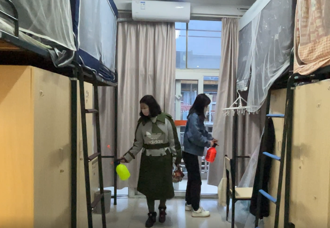 校内隔离房间非使用时段均保持开窗通风状态,且保证每日不少于 3 次的消毒频次。一旦因出现因“发热”、“校外就医返校”、“轮班进校”等人员使用后,均需要进行严格的环境消杀、设施设备消杀和床上用品清洗消杀等操作。且在使用期间,消毒频次增加至每日不少于 5 次。