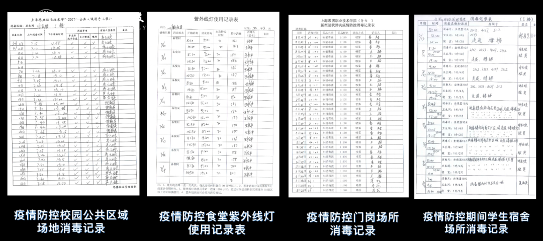 学校制定了各个场所消杀工作的台账记录机制,消毒作业人员每次消毒后记录,同时对重点场所的消毒还要求有消毒视频记录,以确保设置的场所点位消毒工作落实到位。为了更好地监督和检查消毒作业情况,学校还建立了3种检查模式: