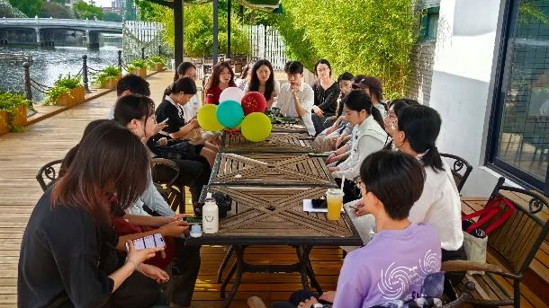 在逸夫楼“24课时咖啡厅”的滨河空间。师生们围坐一圈,就丽娃河的人文故事、志愿服务矩阵、校河文创设计以及校园生态文明建设等话题展开了热烈的讨论和交流。