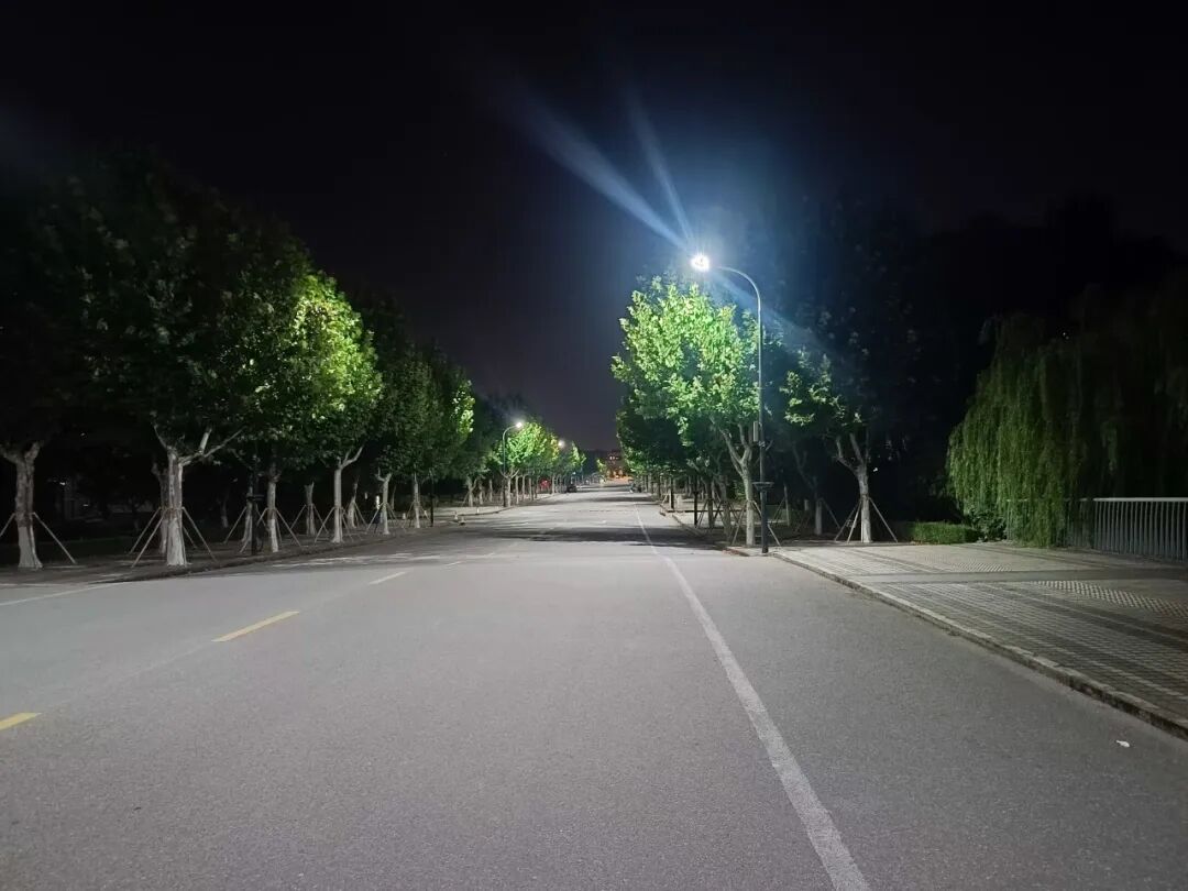 校园道路照明系统已全面升级,采用高亮节能LED灯具,同时对灯杆及线路进行了修护与加固。这些高杆灯不仅是校园夜的守护者,也为夜晚的校园增添了宁静祥和的氛围。
