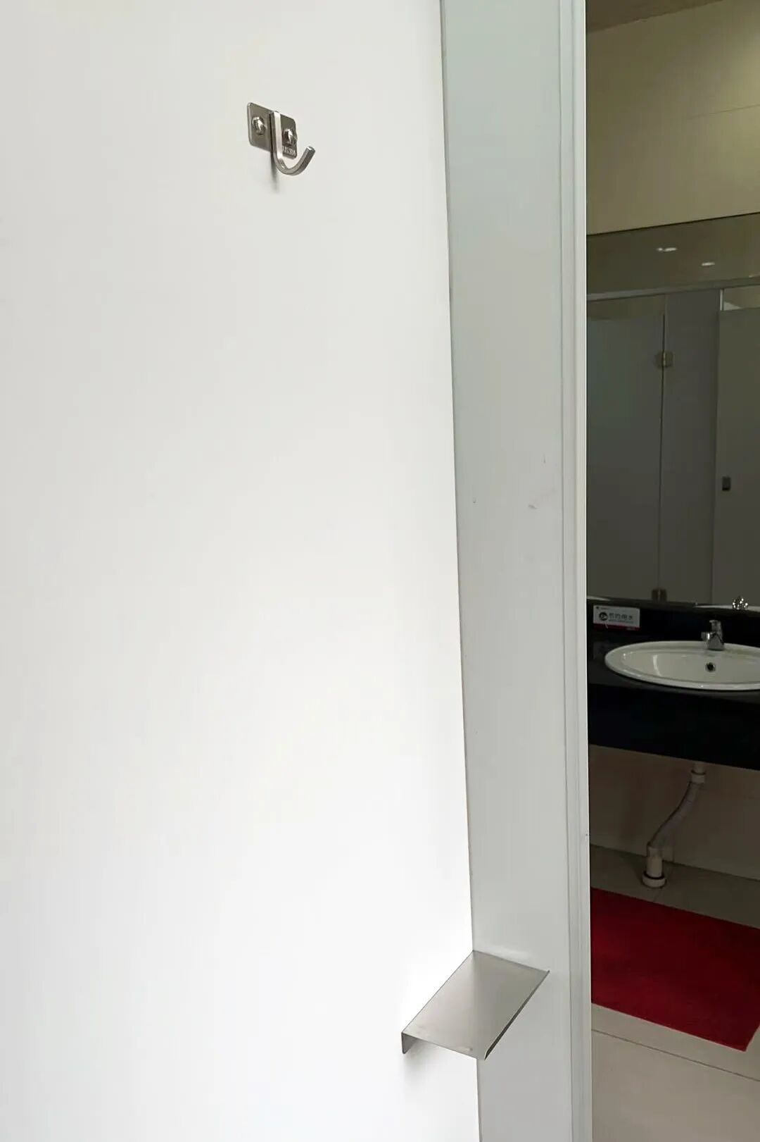 公共区域卫生间还安装了坚固耐用的挂钩,方便大家悬挂书包、外套等物品,避免物品沾染水渍;同时在隔间内增设了手机架,方便放置手机,享受更加便利的校园生活。