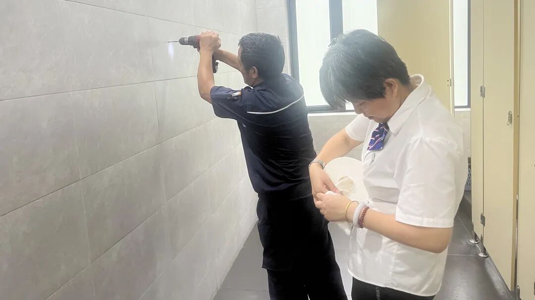 目前,后勤管理处已加快推进各项安装工作,除已完成配置的区域外,其余未覆盖的卫生间也在陆续安装中,让更多同学享受到这份便利。