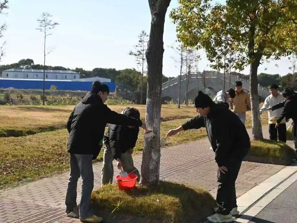 寒风渐起,冬意渐浓,校园里的树木也迎来了专属“防寒装备”!12月3日下午,上海应用技术大学奉贤校区内热闹非凡,一批学生护绿积极分子齐聚西南门主干道的绿化带,开展了一场热火朝天的树木刷白劳动实践活动,用双手为校园绿植筑牢越冬防护墙。