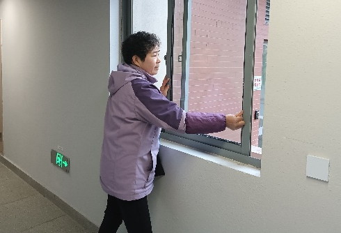 在教学楼、办公楼与宿舍楼宇内,后勤中心同步开展保温防冻工作:对公共区域门窗逐一检查关闭,阻断寒风侵入;对水管、水龙头采取 “龙头微开、持续滴水” 的防冻措施,防止管道结冰爆裂;加强水电暖设备巡检,确保寒潮期间供暖、供水稳定运行。