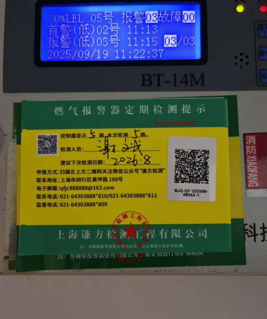 实施临港校区燃气调压箱及报警切断系统维保,全面检修设备性能、测试报警切断功能,保障校园燃气供应安全稳定。