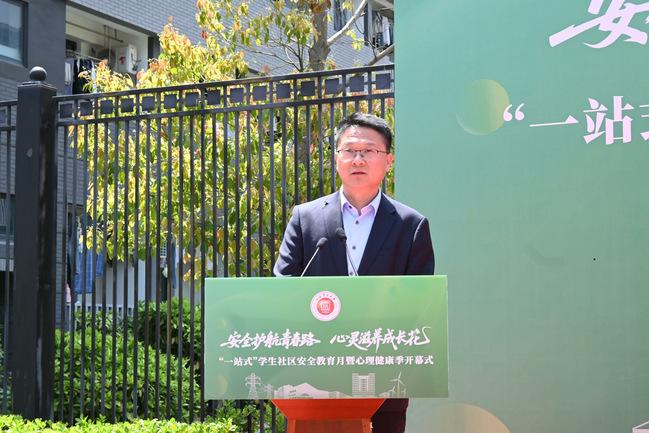 协同学工部以及保卫处在临港校区“一站式”学生社区举行“安全护航青春路,心灵滋养成长花”安全教育月暨心理健康季开幕仪式。