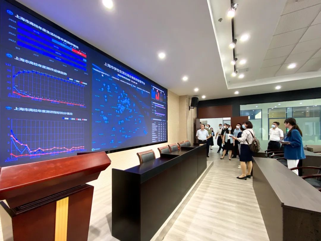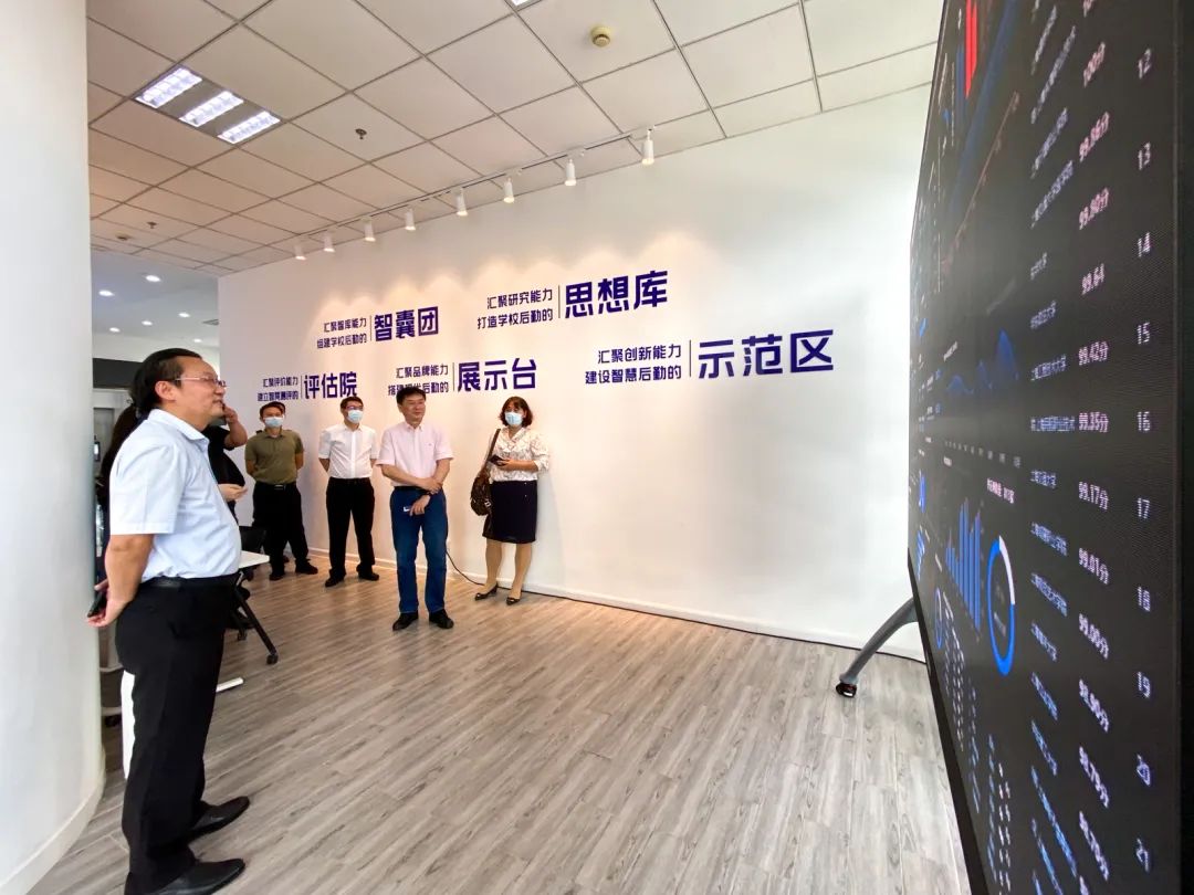 上海现代学校后勤展示中心是上海现代高校智慧后勤研究院依托上海智慧城市的领先技术和高校后勤改革智力资源,对信息技术与学校公共服务进行融合探索,打造线上线下联动的后勤育人实践场景。考察组一行听取了研究院副院长周琦玢对上海市现代学校后勤展示中心的介绍,体验了校园公共服务各类现代化智能物联场景,听取了基于大数据支撑下的现代安防管理、标准化餐厅建设、节能减排和垃圾源头减量等工作情况汇报。