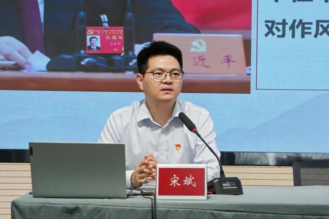 首先,市委党校马克思主义学院副教授、法学博士宋斌作了题为《深入学习习近平总书记关于作风建设重要论述,贯彻落实中央八项规定精神》的专题学习辅导报告。报告从深刻认识加强作风建设的重大意义、准确把握加强作风建设的基本要求、增强持续推进作风建设的高度自觉三个层面,阐释了加强党的作风建设“是什么、为什么、怎么办”问题,深入阐述了贯彻落实中央八项规定精神的重要性、必要性及方法论。宋斌认为,加强党的作风建设是推进党的自我革命、永葆党的生机活力的必然要求,关乎人心向背与党的生死存亡。报告以“学习新思想,奋进新征程”收尾,勉励党员牢记“空谈误国、实干兴邦”,坚定信心、同心同德,埋头苦干、奋勇前进 。