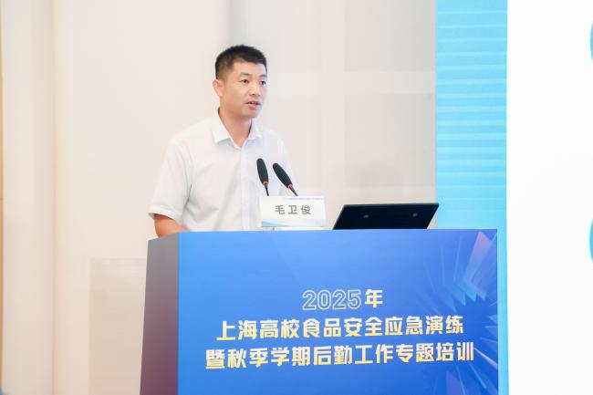 为进一步提升高校食品安全突发事件应急处置能力,提升高校后勤管理水平,推动高校后勤工作高质量发展,9月8日下午,2025年上海市高校食品安全突发事件应急处置演练暨秋季学期后勤工作专题培训在东华大学松江校区举行。本次演练由市教委、市市场监管局主办,市教委教育技术装备中心牵头承办。市教卫工作党委副书记顾红亮出席活动并讲话。东华大学副校长阎林平致欢迎词,市市场监管局餐饮食品安全监督管理处处长黄丽瑢现场点评。活动由市教委后保处处长贺小虎主持,全市各高校分管校领导、后勤部门负责人及相关单位代表共计200余人参加演练及培训。