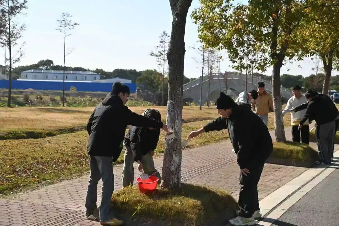 寒风渐起,冬意渐浓,校园里的树木也迎来了专属“防寒装备”!12月3日下午,上海应用技术大学奉贤校区内热闹非凡,一批学生护绿积极分子齐聚西南门主干道的绿化带,开展了一场热火朝天的树木刷白劳动实践活动,用双手为校园绿植筑牢越冬防护墙。