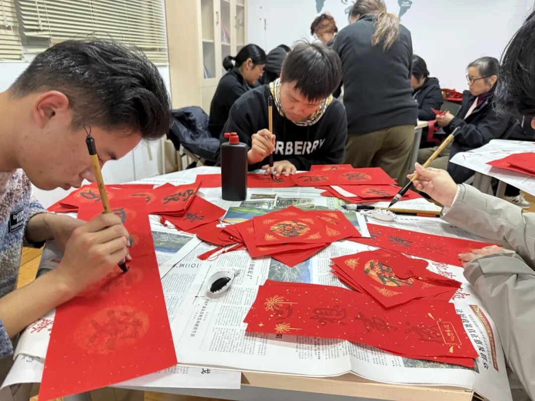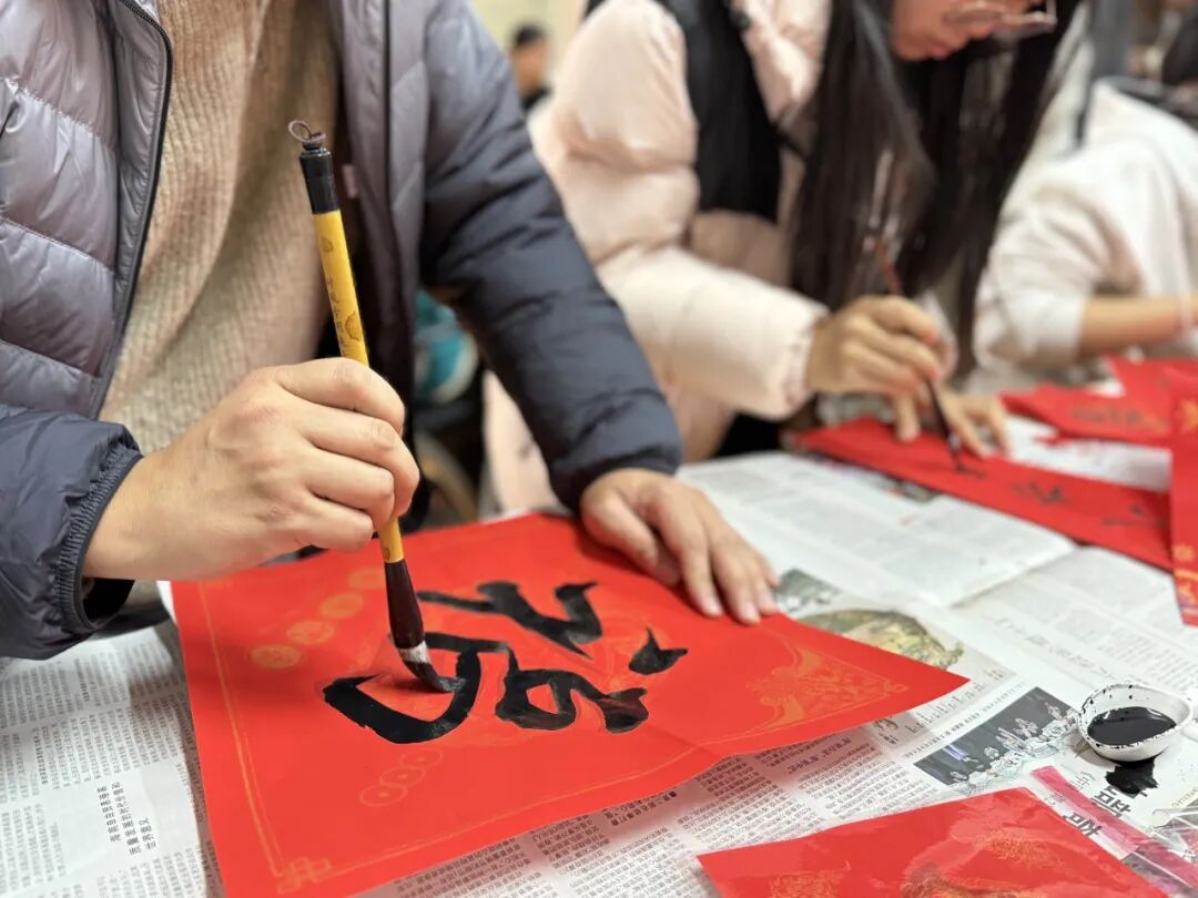 在“写福迎春”区,党员志愿者与同学们一起挥毫泼墨、笔走龙蛇。一幅幅寓意美好的春联、一张张满载祝愿的“福”字,在欢声笑语中渐次铺展,映红了大家的脸庞,也温暖了冬日的公寓。