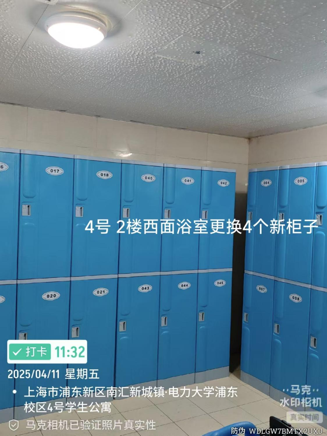 完成临港校区四号、五号、六号学生公寓浴室更衣柜更新工作。